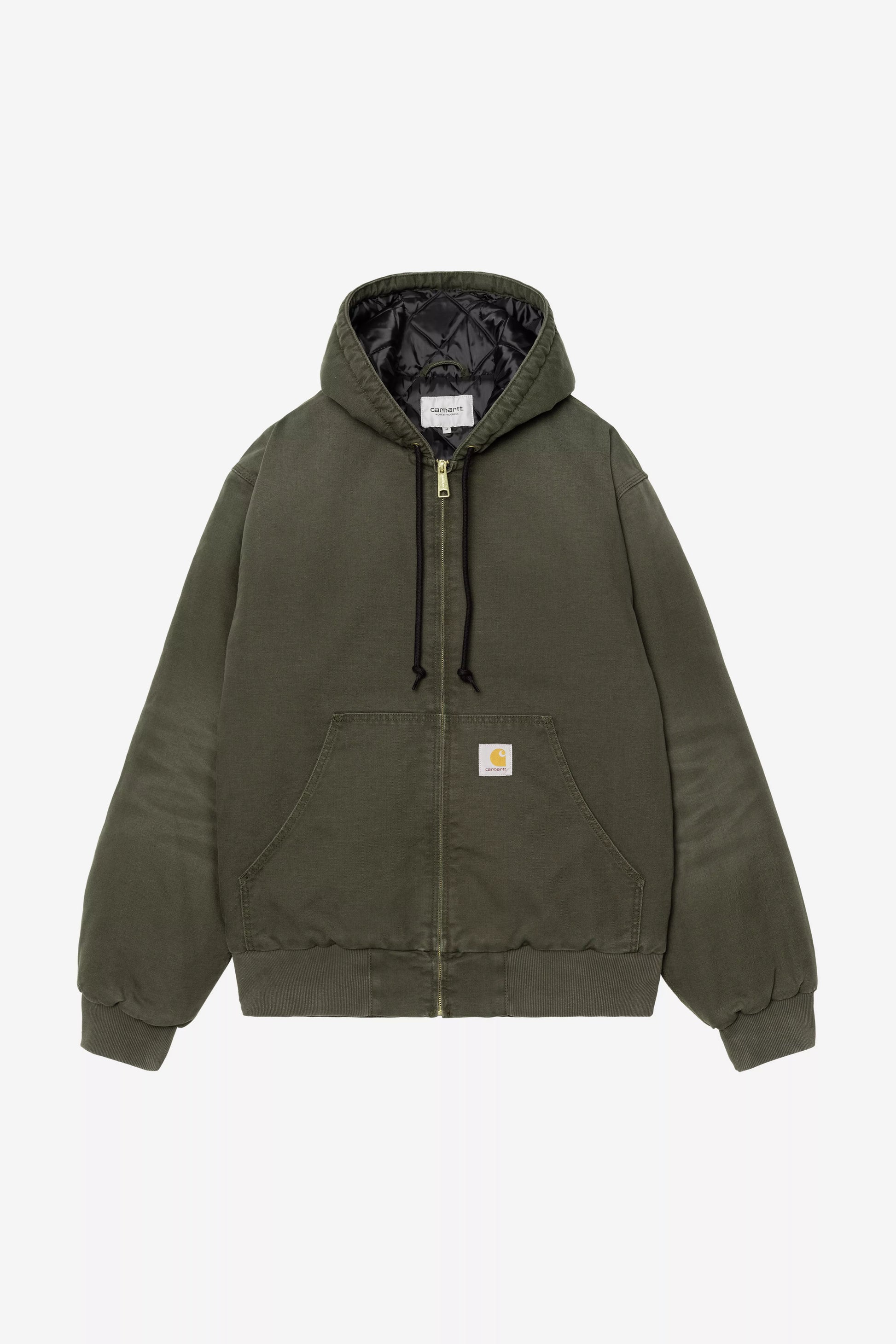 Inside, the quilted lining provides superior insulation for colder weather, while the adjustable hood, rib-knit cuffs, and elastic hem ensure comfort and protection from the wind. Finished in a timeless black colorway with the signature Carhartt square label, it’s a versatile staple for everyday wear.